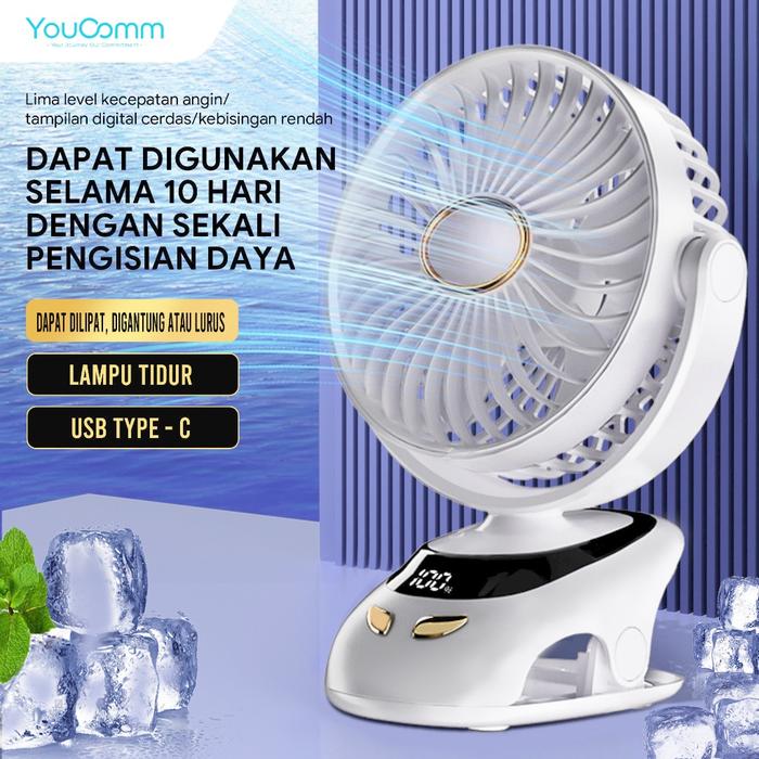 Youcomm 15000 mAh Kipas Angin USB Clip Mini Fan Rotating Kipas Angin Meja Mini Jepit Portable LED