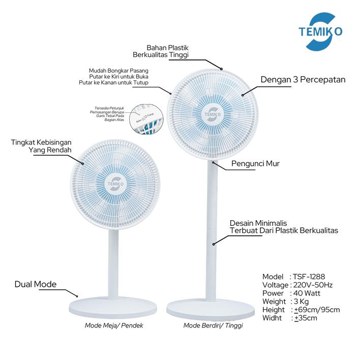 Temiko Kipas Angin Stand 2in1 TSF-1288 12inch kipas angin