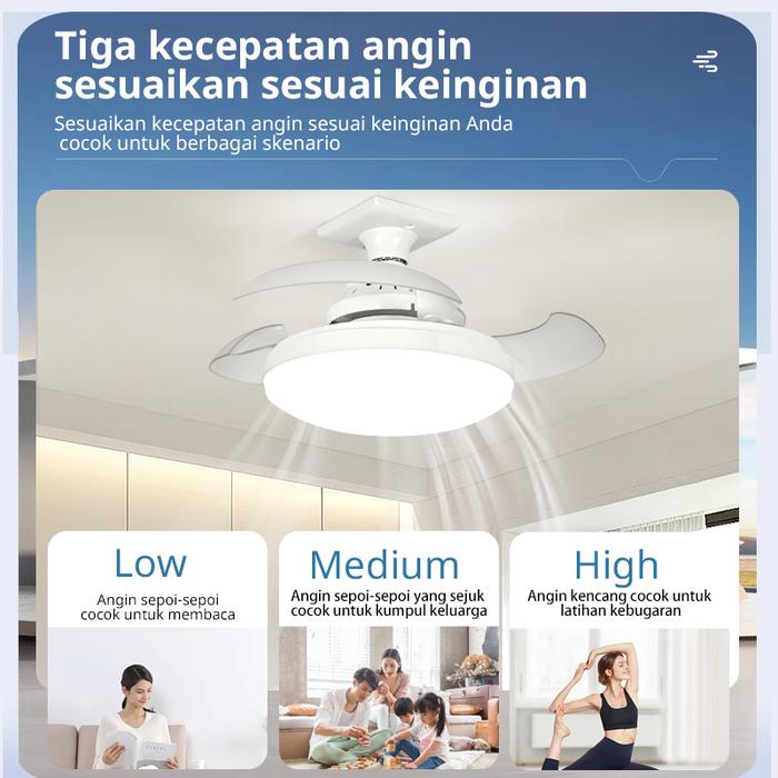 Lampu Kipas Gantung Plafon Tidak Terlihat LED 3 Warna Motor DC Kipas Lampu Kebisingan Rendah Saklar