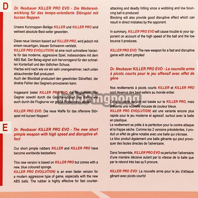 Dr. Neubauer Killer Pro Evo 1.3 1.5 1.8 mm Medium Pips Bintik Serang Semi Tipis