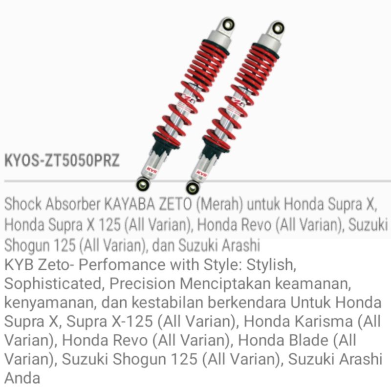Shockbreaker KYB Zeto ZT 5050 Supra 125 blade shogun Panjang 35 cm