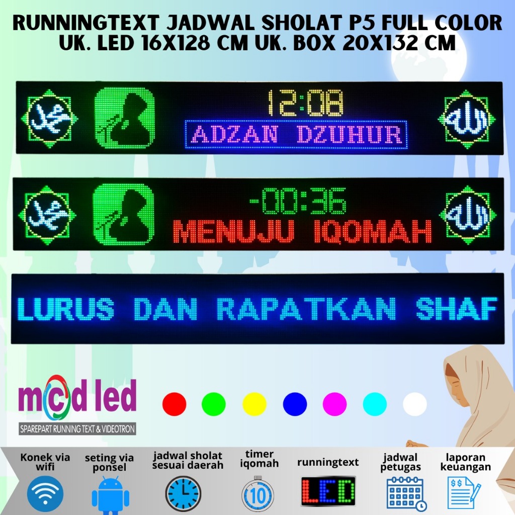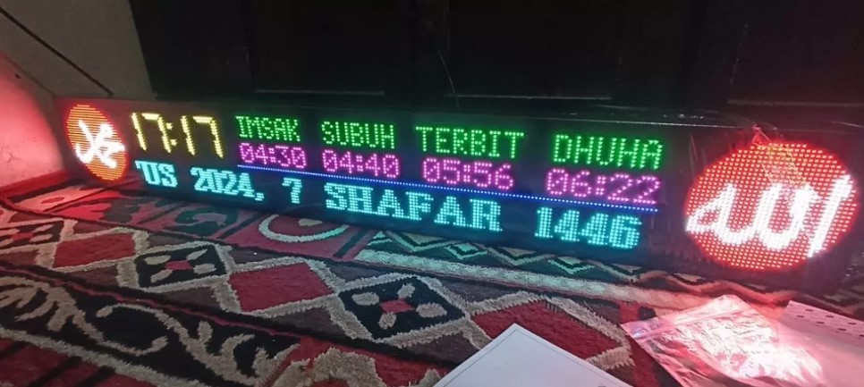 Jam waktu sholat - Jam shalat masjid - Jadwal Waktu Sholat - Jam sholat digital - Jam masjid P5 RGB Uk 16x128cm - Mth11