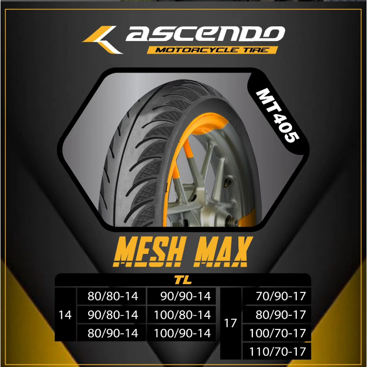 Ban Motor Matic Tubles ASCENDO MESH MAX MT 405 Ring 14 80/80-14 90/80-14 80/90-14 Gratis Pentil
