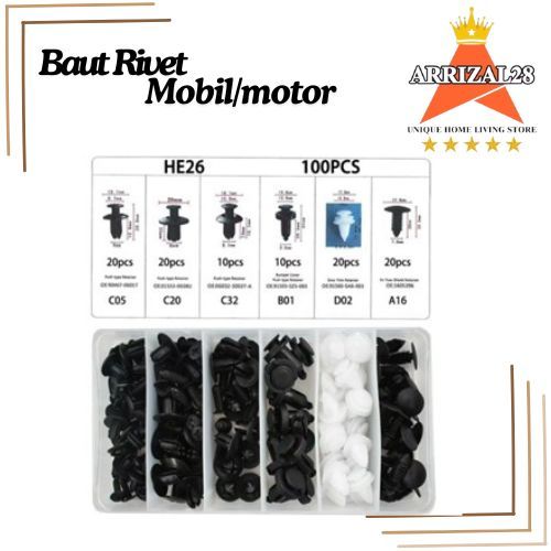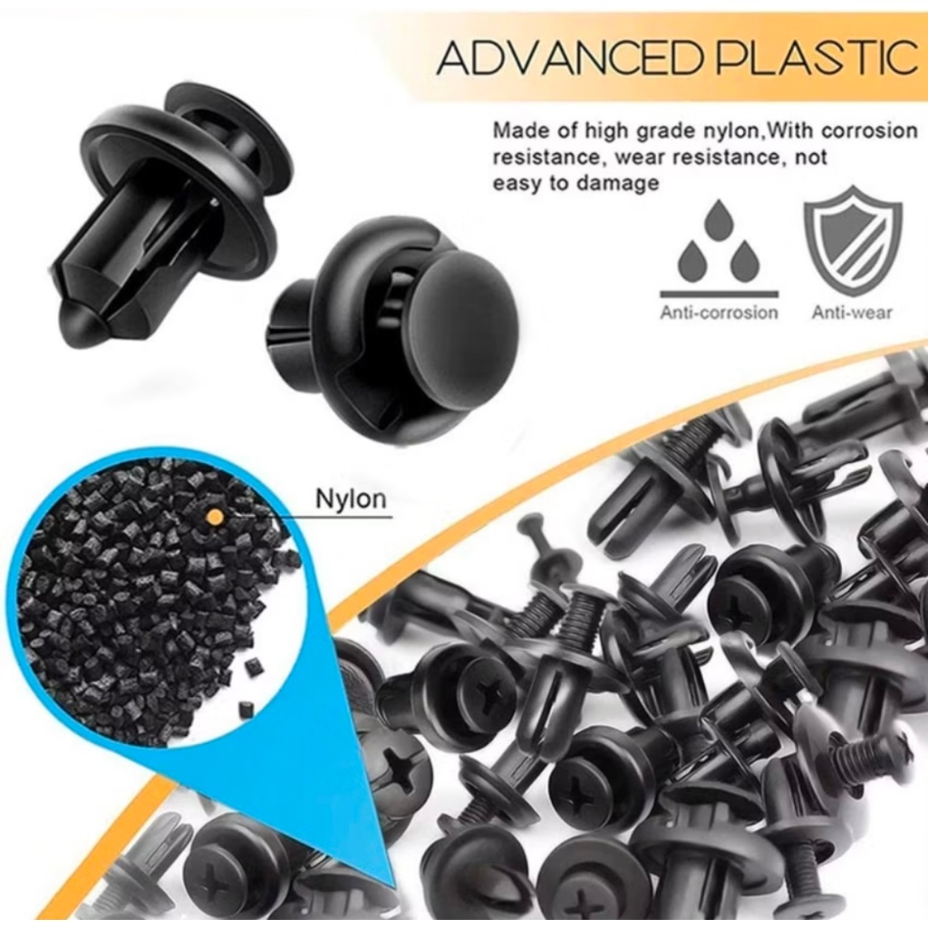 *(BUBBLEWRAP) BAUT RIVET PENGUNCI BODY BEMPER MOBIL/MOTOR UNIVERSAL KLIP PLASTIK SET ISI 100