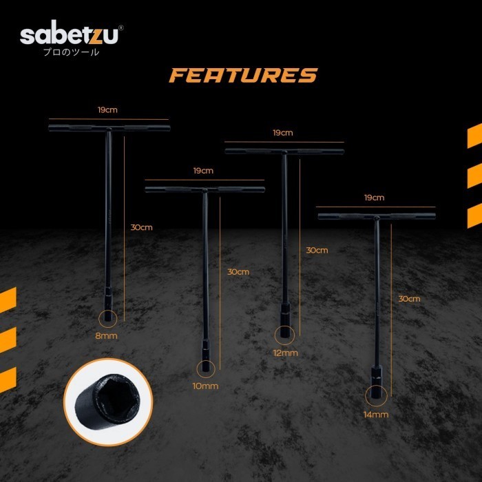 SABETZU Kunci Sok Socket Shock Handle Konci T Hitam 8mm 10mm 12mm 14mm - Kunci T Kunci Ban Otomotif Mobil Motor - Kunci