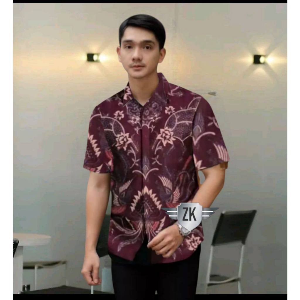 kemeja batik pria lengan panjang baju batik murah terbaru motif soang burgundy seragam batik kerja kantor kekinian