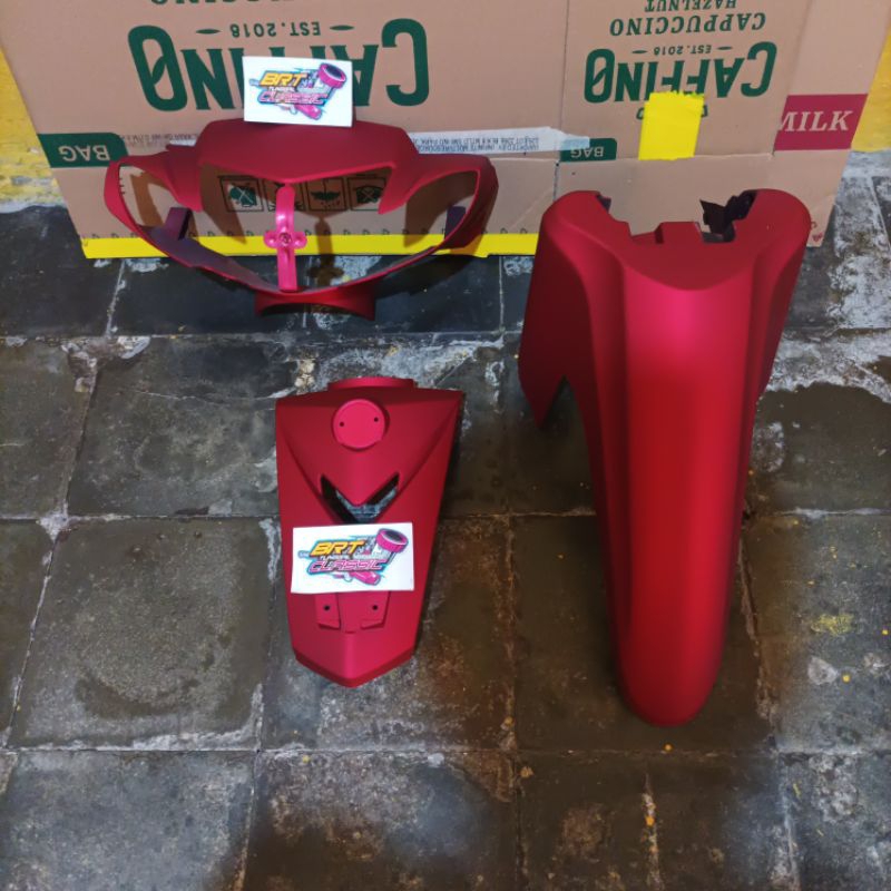 satu paket cover batok set panel spakbor warna merah maron dop pcx set rekvetor vega r new