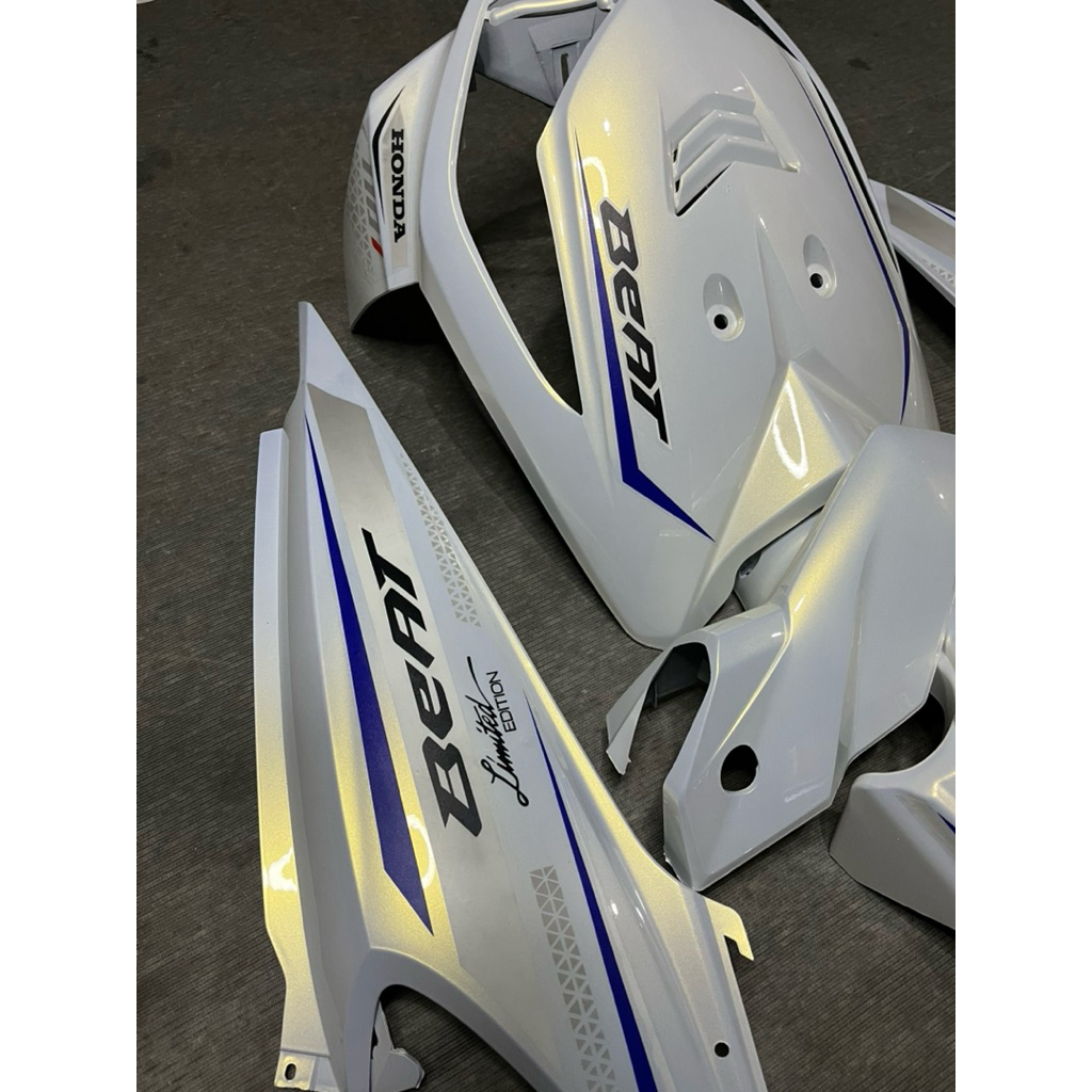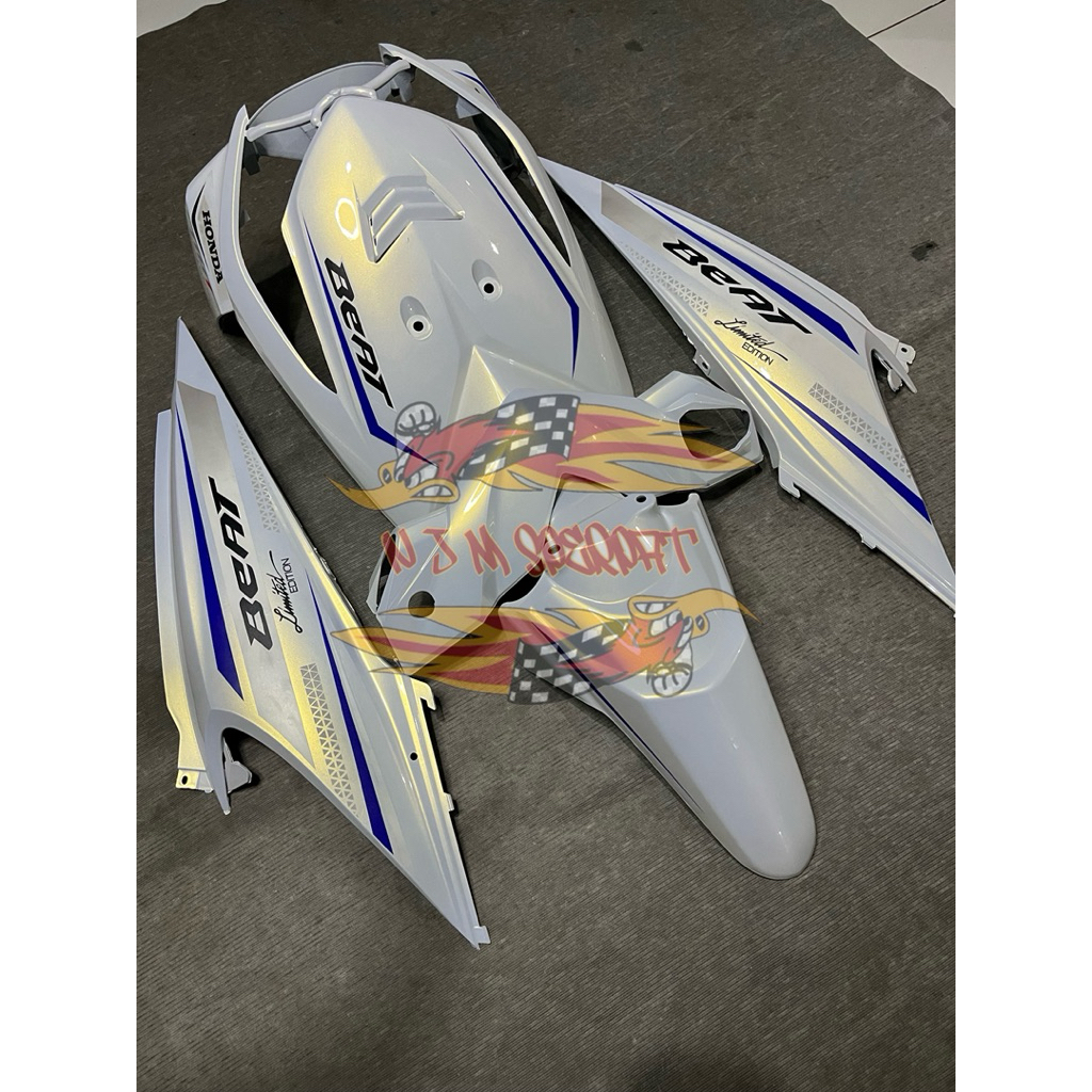 COVER FULL BODY HALUS HONDA BEAT KARBU TAHUN 2008-2012 WARNA PUTIH LEMBAYUNG GOLD(CAT CUSTOM) PLUS STRIPING LIMITED EDIT