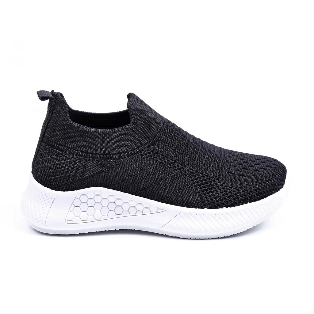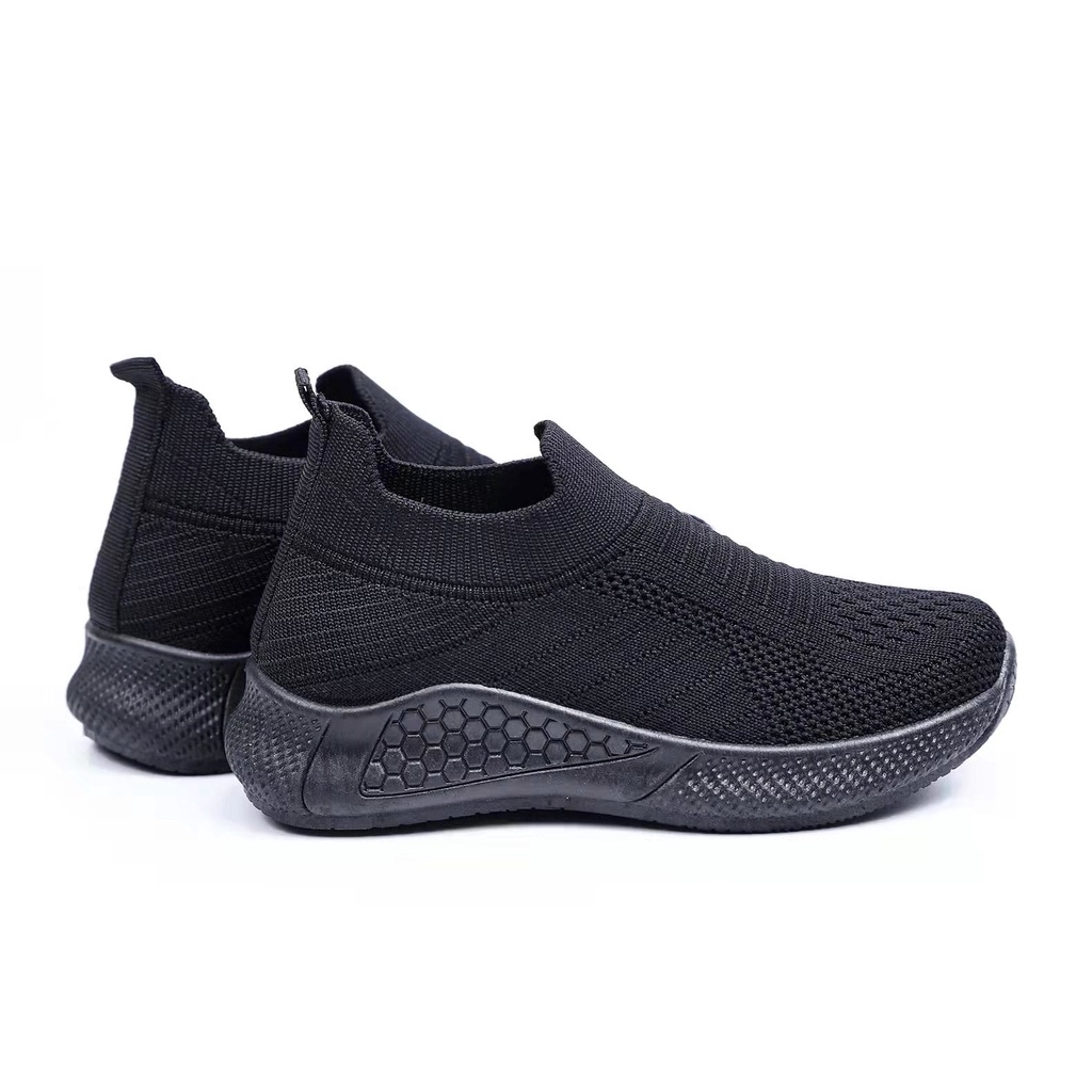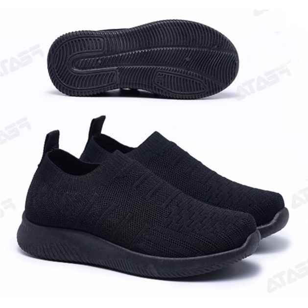 Sepatu Sekolah Anak Ukuran 29-40 Full Hitam / Sneakers Hitam Tanpa Tali - A61-H