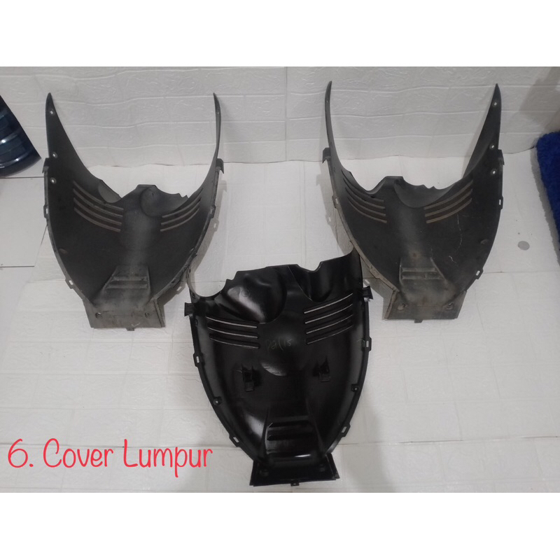 1. Cover Tengki, 2. Tutup Kipas, 3. Tutup Kenalpot, 4. Cover Sepidometer, 5. Cover Kunci, 6. Cover Lumpur, 7. Sepakbor Belakang, 8. Cover filter set