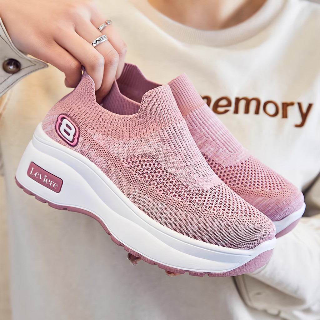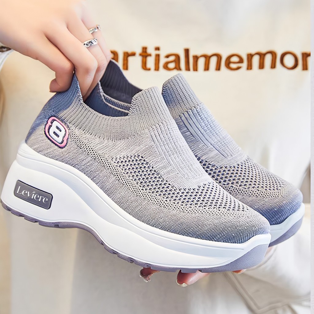 EVR Hyeri FREE BOX Sepatu Sneakers Wanita Motif 8 Comfort Wedges Bahan Kanvas Premium LV0157