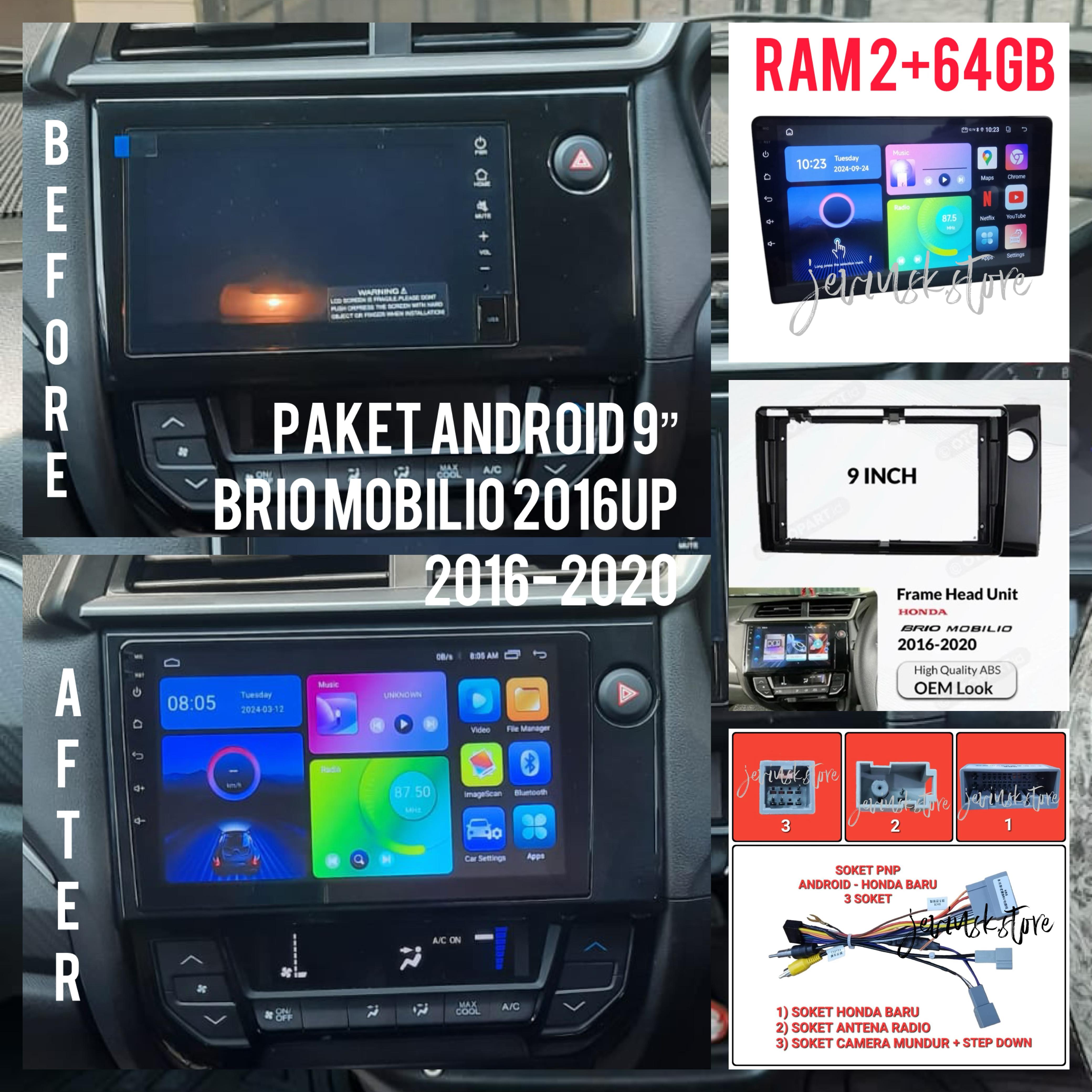 (TERIMA PASANG JKT) PAKET HONDA BRIO / MOBILIO 2016 KEATAS ( HEADUNIT ANDROID 9" + FRAME MOBILIO + SOKET PNP )