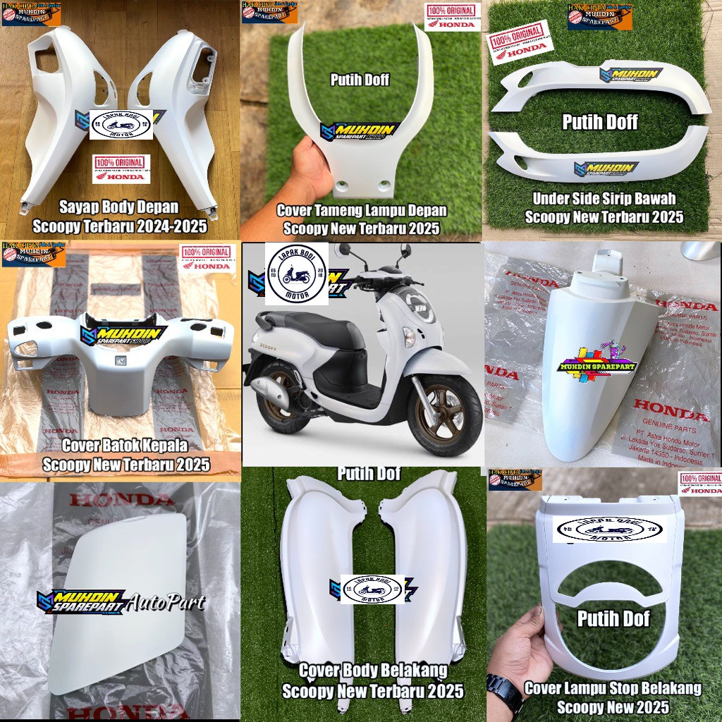 Paketan Satuan Cover Body Motor Scoopy New Terbaru 2025 Putih Dof Original sayap Body spakbor batok tameng sirip bawah o