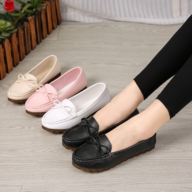 Sneakers Slip On Wanita Kulit Sintetis Black & Beige