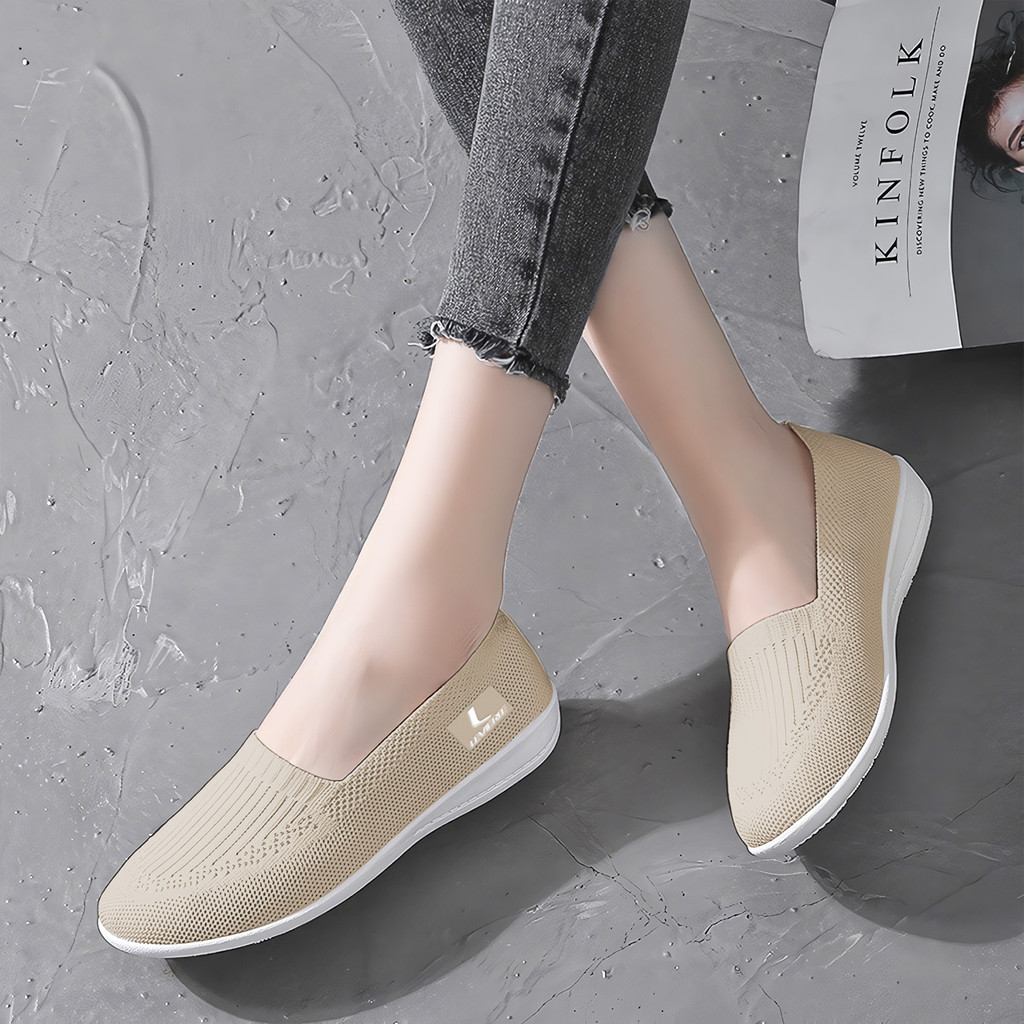 EVR Eunji FREE BOX Sepatu Slip On Rajut Sepatu Wanita Tanpa Tali Sepatu Sport Slip On Ultra LV0175