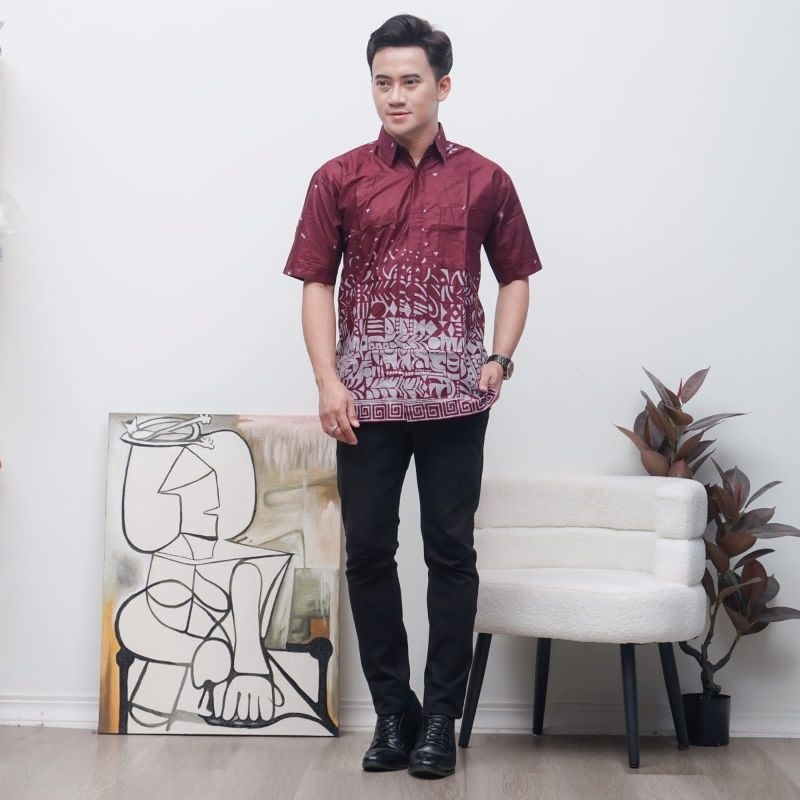 Batik Couple Terbaru Motif Sutena Burgundy Baju Batik Couple Modern
