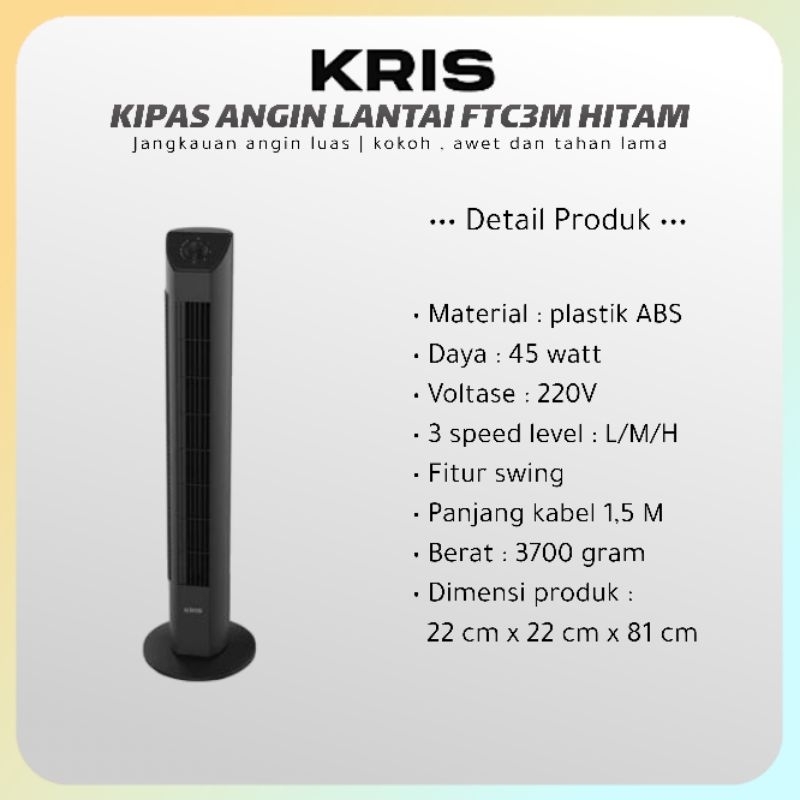 KRIS KIPAS ANGIN LANTAI FTC3M 45W HITAM KIPAS ANGIN TOWER 80CM KRIS