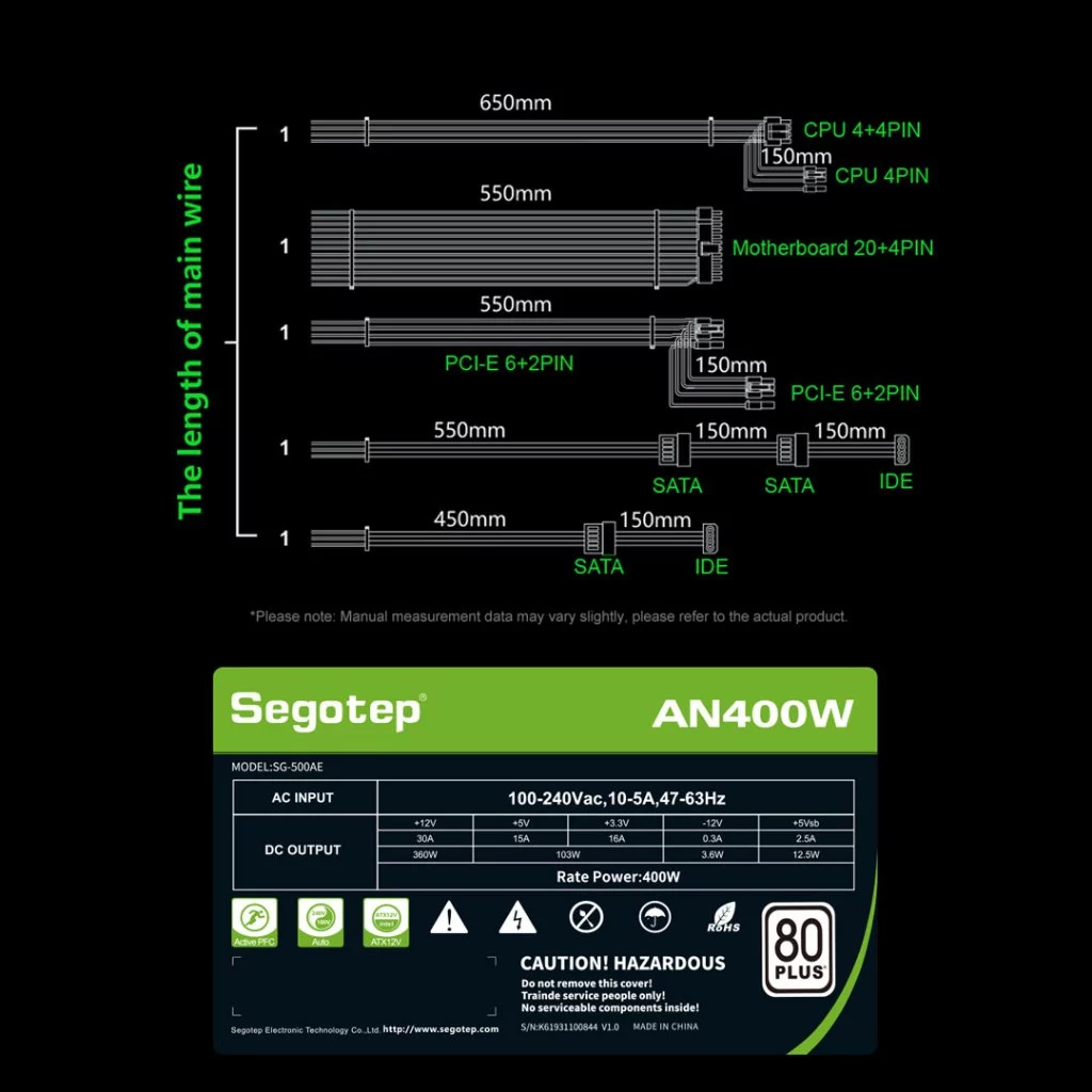 Segotep AN400W PSU Power Supply 400 Watt 80 Plus White