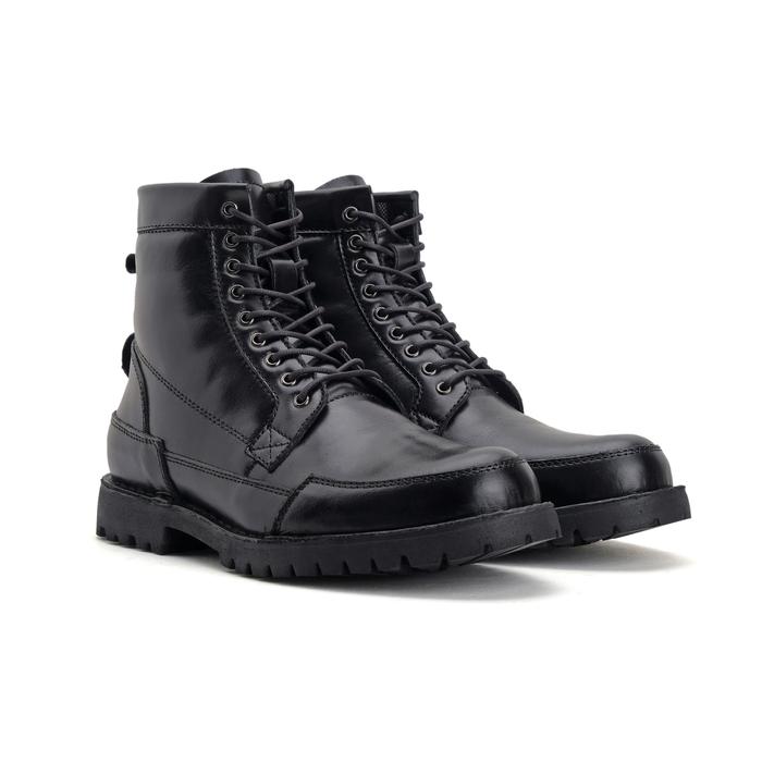 Kratos Black - Sepatu Kulit Pull Up Leather Tactical Biker Rugged Boots High Shoes