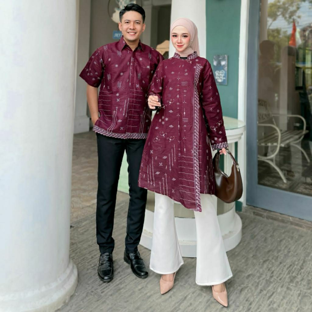 Tunik Batik Couple Mahogany Aswaja Batik Couple Suami Istri Jumbo Batik Kerja Wanita Batik Seragam Kantor Katun Lengan Panjang