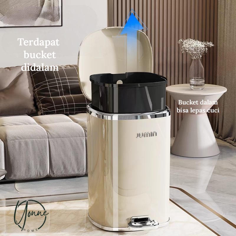 YONNE Tempat Sampah Mewah Aesthetic Pedal Injak Electroplate Ada Bucket