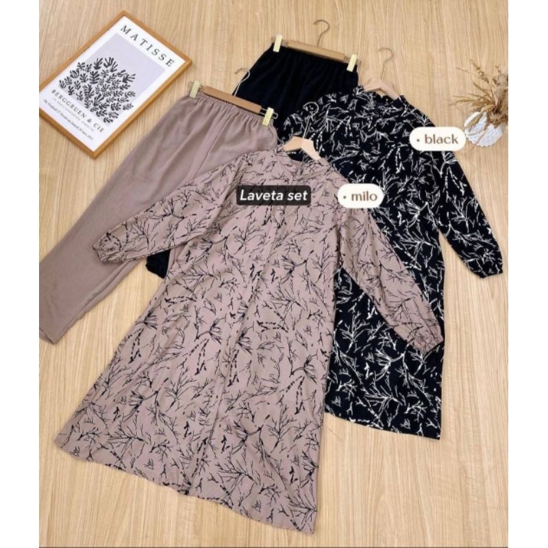 LAVETA SET TUNIK Setelan Tunik Terbaru Wanita Kekinian Setelan Tunik Adem Rayon Premium Grade A Set Long Tunik Wanita Muslimah Terbaru Busui Friendly