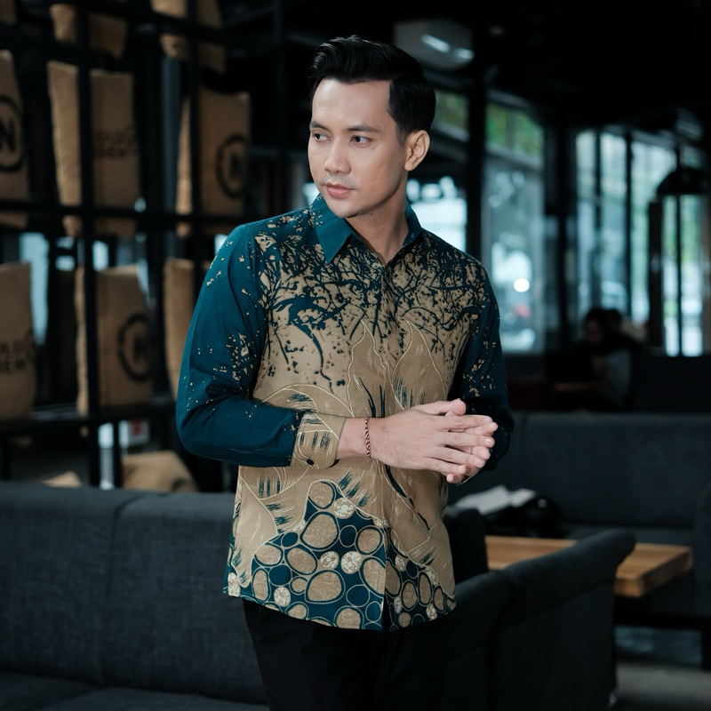 KUSUMA HIJAU Kemeja batik pria lengan panjang furing full katun SLIMFIT