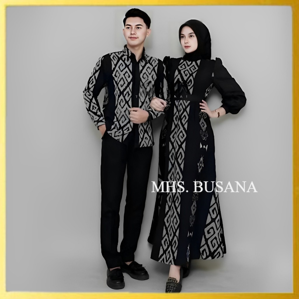 Baju Tenun Couple Hitam Setelan Kondangan Gamis Kemeja Pria Wanita Lebaran Kekinian Modern MHS BUSANA