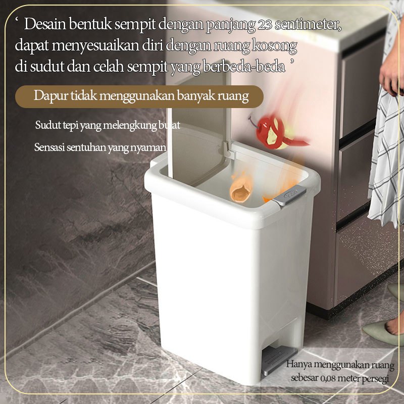 Tempat sampah yang dioperasikan dengan kaki Tong Sampah Minimalis Liter Tutup Rapat Bahan PP Kuat Cocok untuk Dapur, Kamar Mandi & Kantor