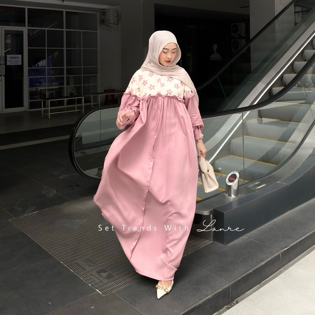 Talita Gamis Motif Bunga Model Ruffle Dress Jumbo Bisa Untuk Bigsize