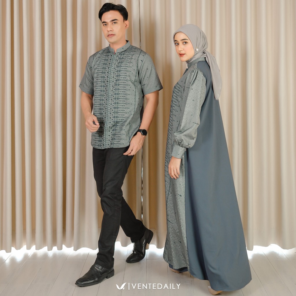 Ventedaily - Launa Couple Baju Pasangan Gamis Kemeja Elegan Outfit Kondangan Couple Suami Istri