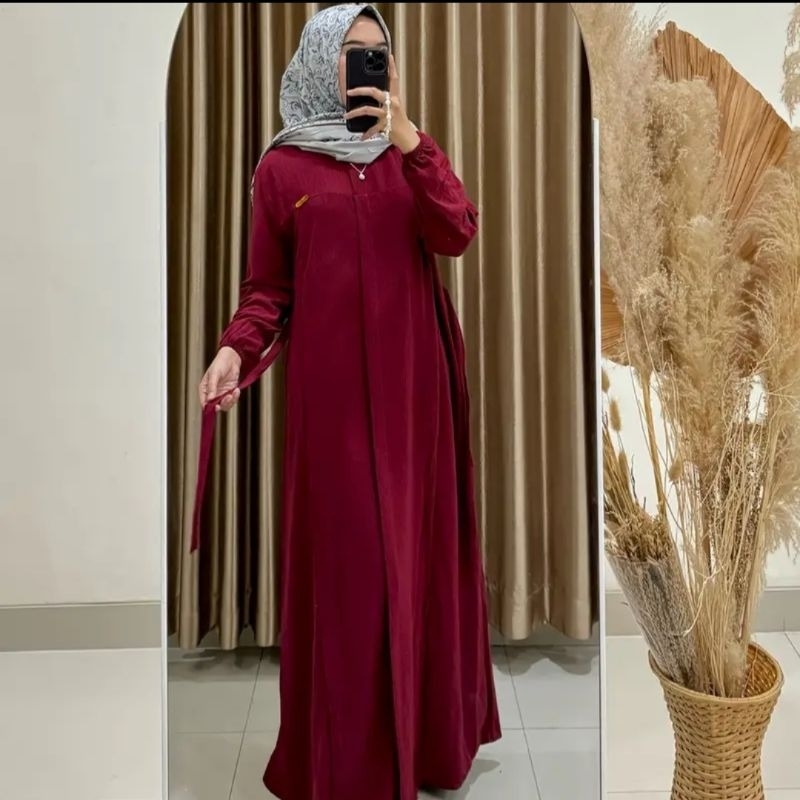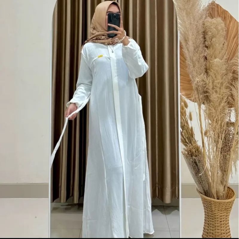 [ Gamis Lebaran 2025 ] Abaya Almira Elsira Dress Gamis Maxi Syari Muslim Lebaran Wanita Dewasa Mewah Simple Pesta Kondangan Kain Crinkle Airflow Premium