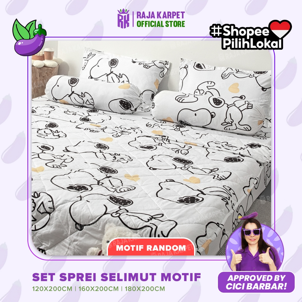 [Mall] RAJA X CICIBARBAR - Sprei Dan Bedcover Kain Microtex Halus Nyaman Adem 3 Pilihan Ukuran Dikirim Motif Random