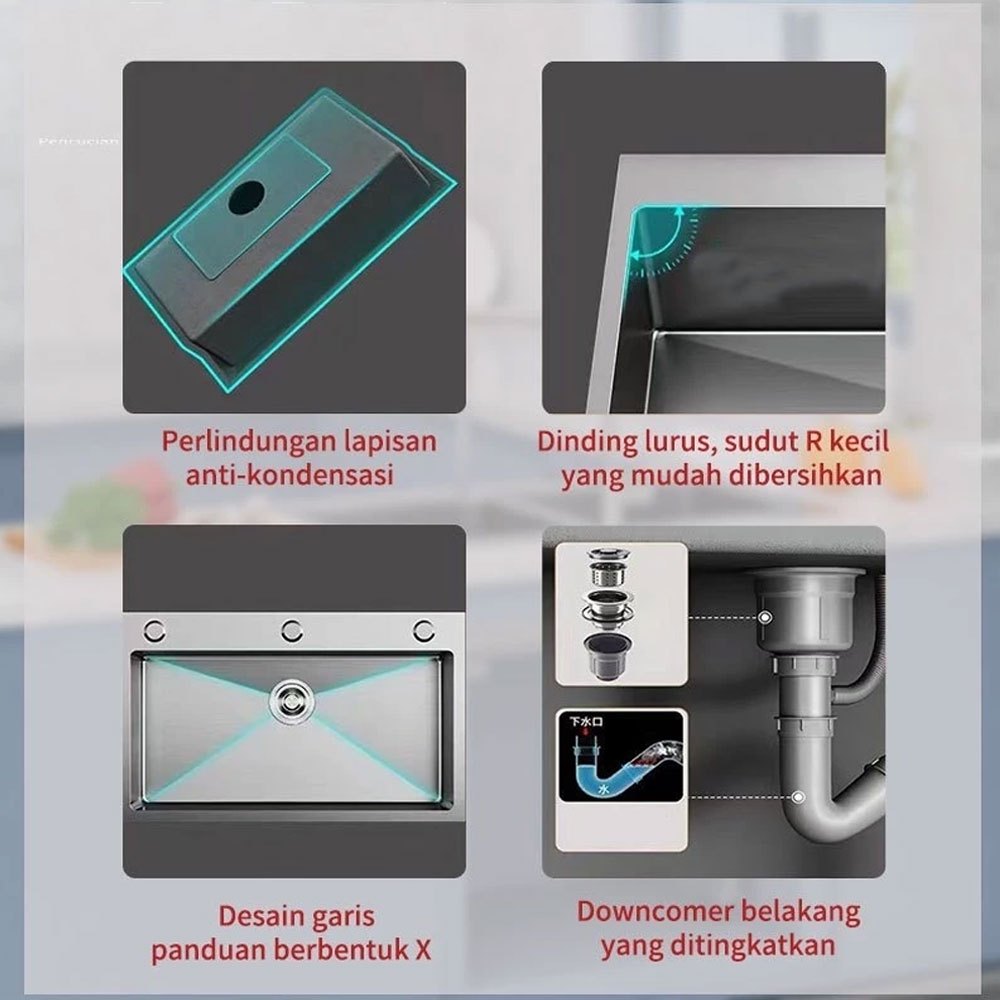 [Mall] COZY Stainless Steel Kitchen sink Modern 3.0mm Bak Cuci Piring Stainless Hitam cuci piring Ketebalan wastafel cuci piring stainless