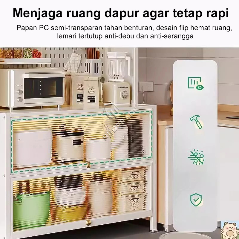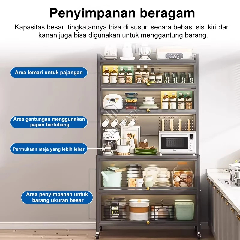 [Mall] Rak Lemari Dapur Dengan Pintu Lemari Rak Piring Minimalis Rak Oven Microwave Rak Kabinet Dapur Rak Penyimpanan 5 Susun Serbaguna