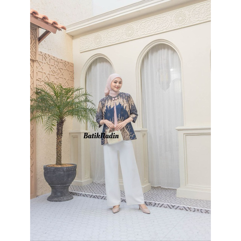 Blouse Seroja - Baju Batik Kerja Couple Atasan Batik Couple Model Bolero M L Xl XXL XXXL L4 L5 L6 L7L8 Muat BB 120kg.