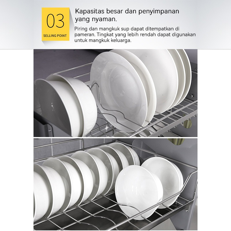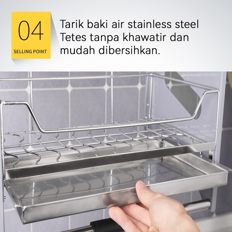 [Mall] Rak Piring Pull Down Untuk Kitchen Set Lemari Atas 304 Stainless Steel Dapur Kabinet Atas Bisa Ditarik Ke Bawah Tempat Mangkok Gelas Peralatan SHN