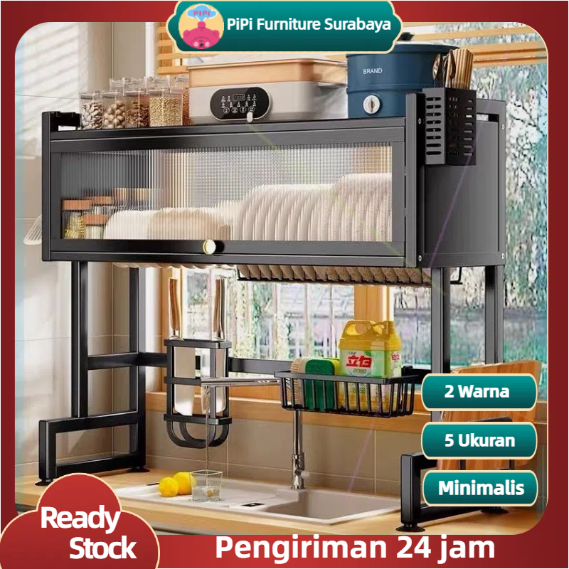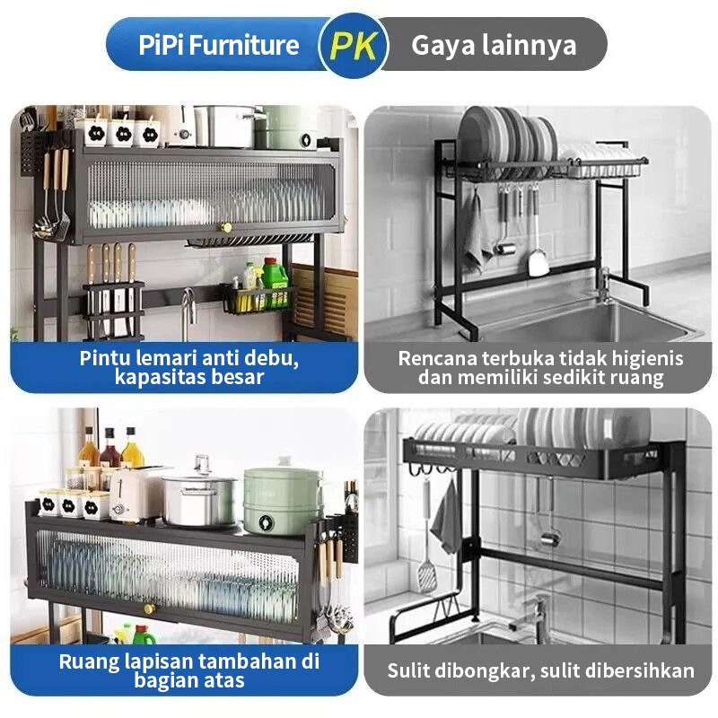 [Mall] PiPi Furniture Rak Piring Wastafel Stainless Steel Rak Dapur Multi-fungsi Dengan Penutup Rak Dapur