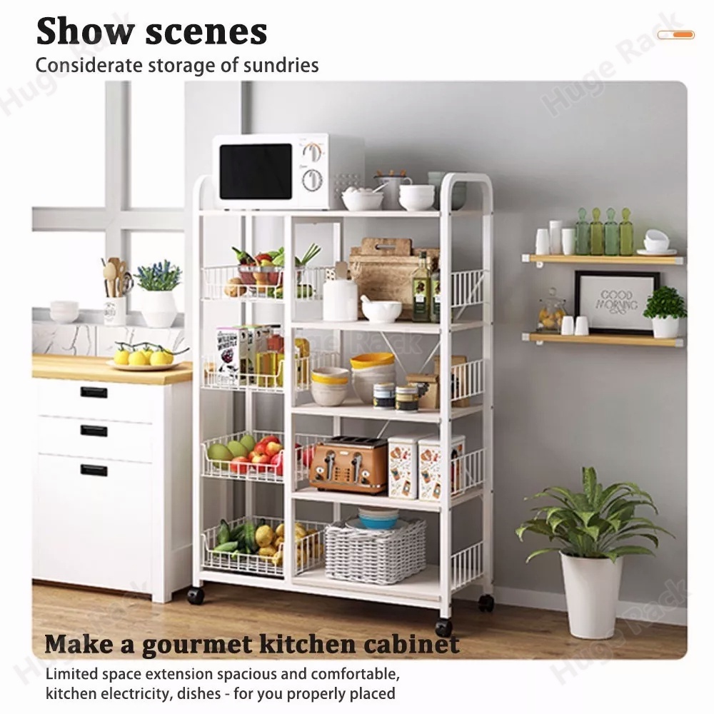 [Mall] Rak Oven Microwave Rak Dapur 5 Susun Minimalis Rak Oven Dapur Rak Penyimpanan Serbaguna Dengan 4 Roda Rak Microwave Dapur lemari dapur minimalis