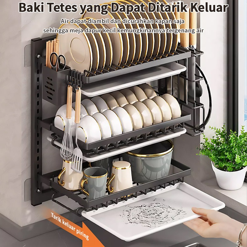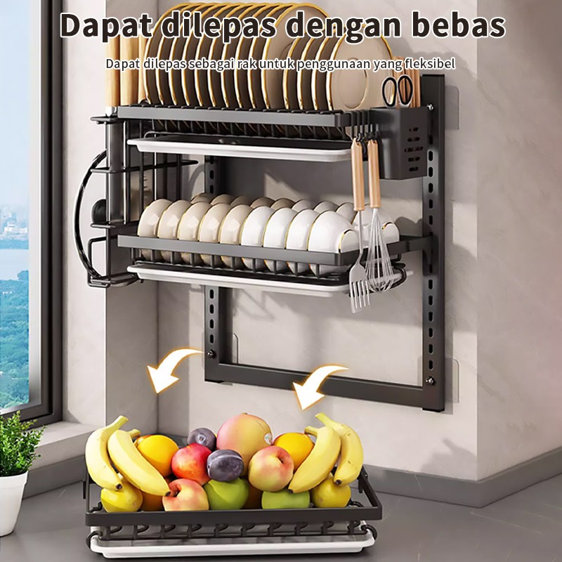 [Mall] Rak Dapur Rak Piring Gantung Rak Dinding Rak Gantung Besi Anti Karat Rak Penyimpanan Mangkuk