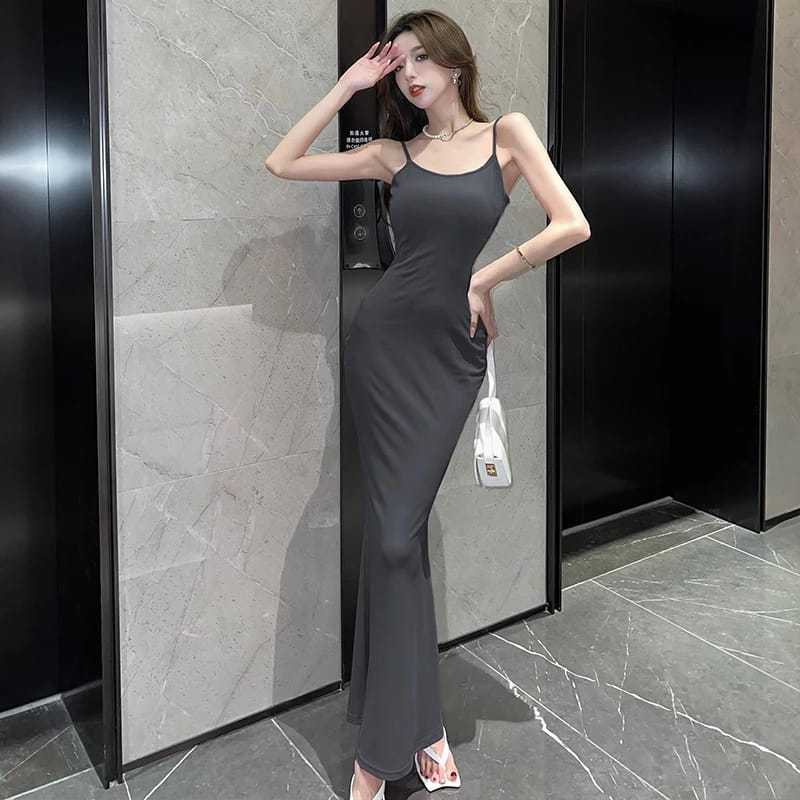 (DRESS VIRAL) DRESS TANKTOP MAXI BODYCON TALI SPAGETI KOREAN PARTY STYLE / LONGDRESS TANKTOP PANJANG