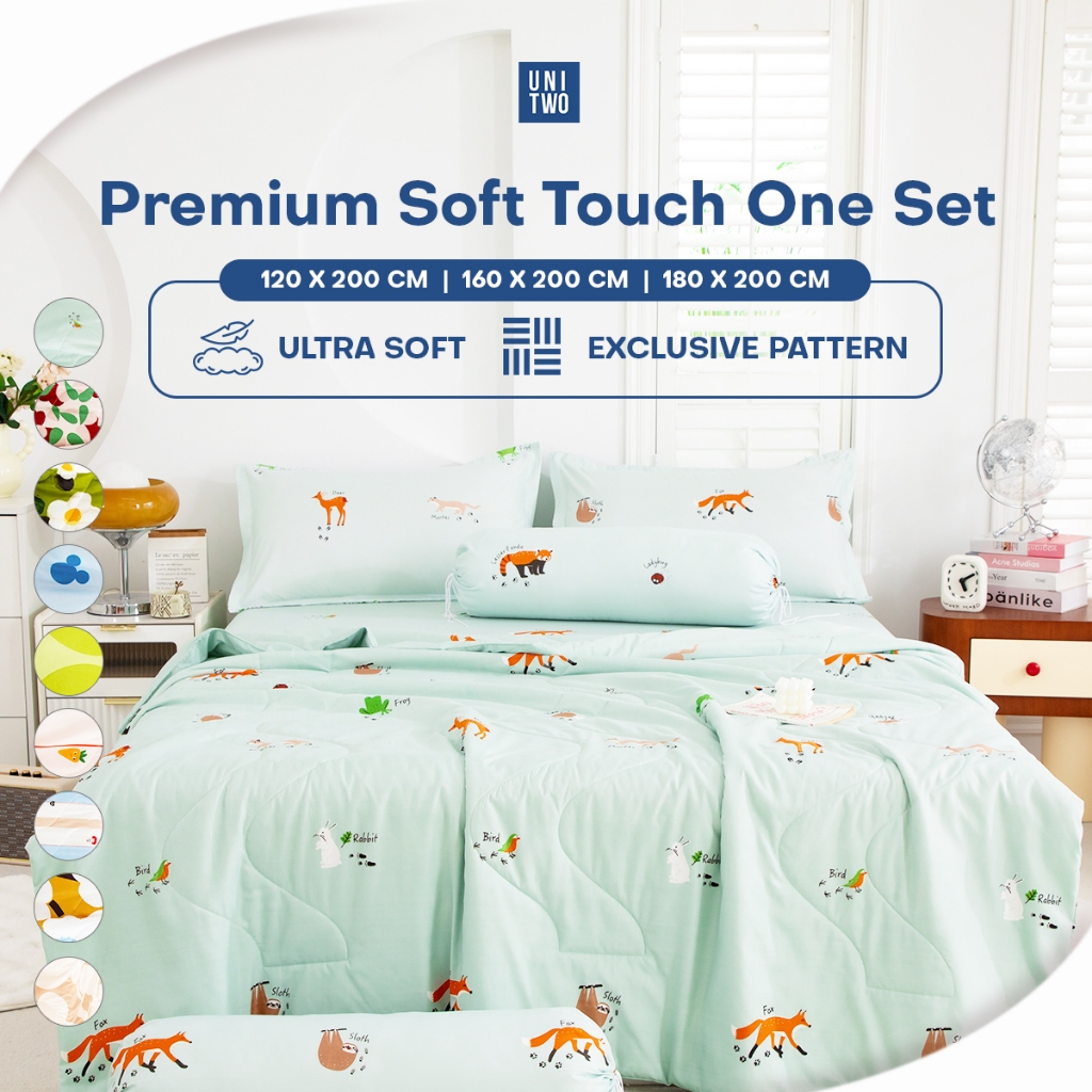 [Mall] UNITWO Premium Soft Touch Bed Cover Set Dengan Sprei Sarung Bantal Full Pressing Dengan Motif Aesthetic 180X200 160X200 120X200 Halus Lembut dan Nyaman