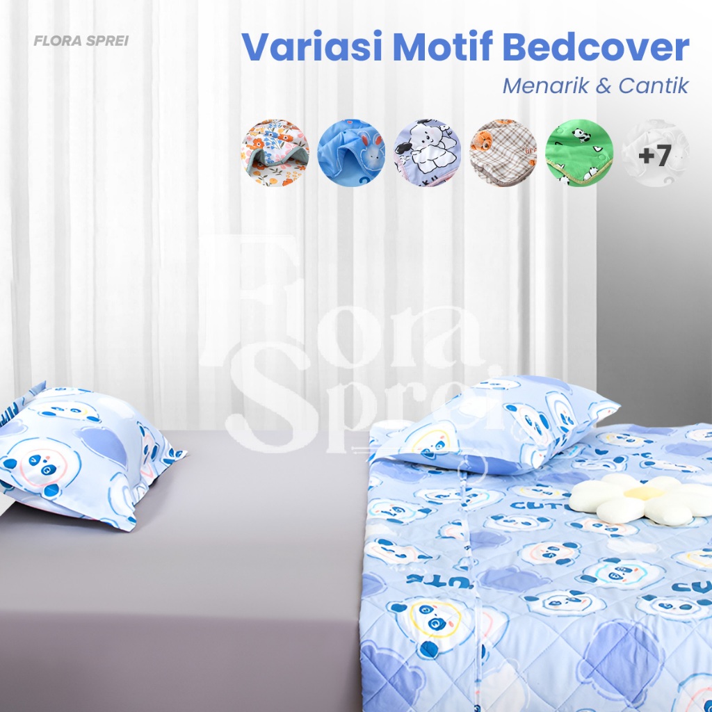 [Mall] FLORA BedCover Set Sprei Set Microtex Set Sprei Selimut Sarung Bantal Guling Multi Variasi