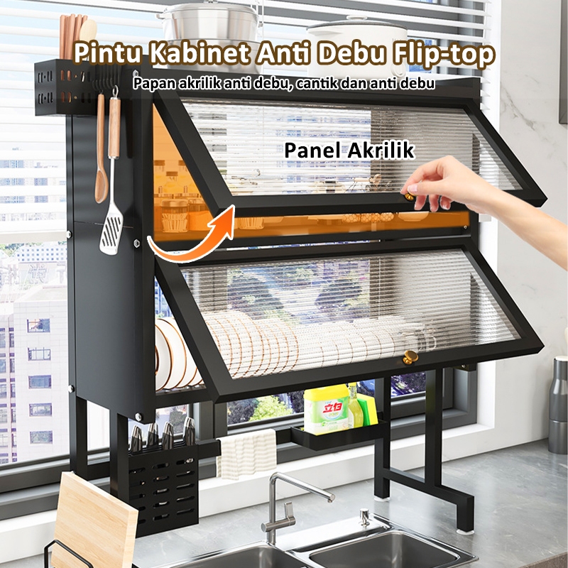 [Mall] Double Susun Rak Piring Wastafel Dapur Multifungsi Tempat Penyimpanan Tertutup Anti Debu Anti Karat Rak Susun Atas Wastafel