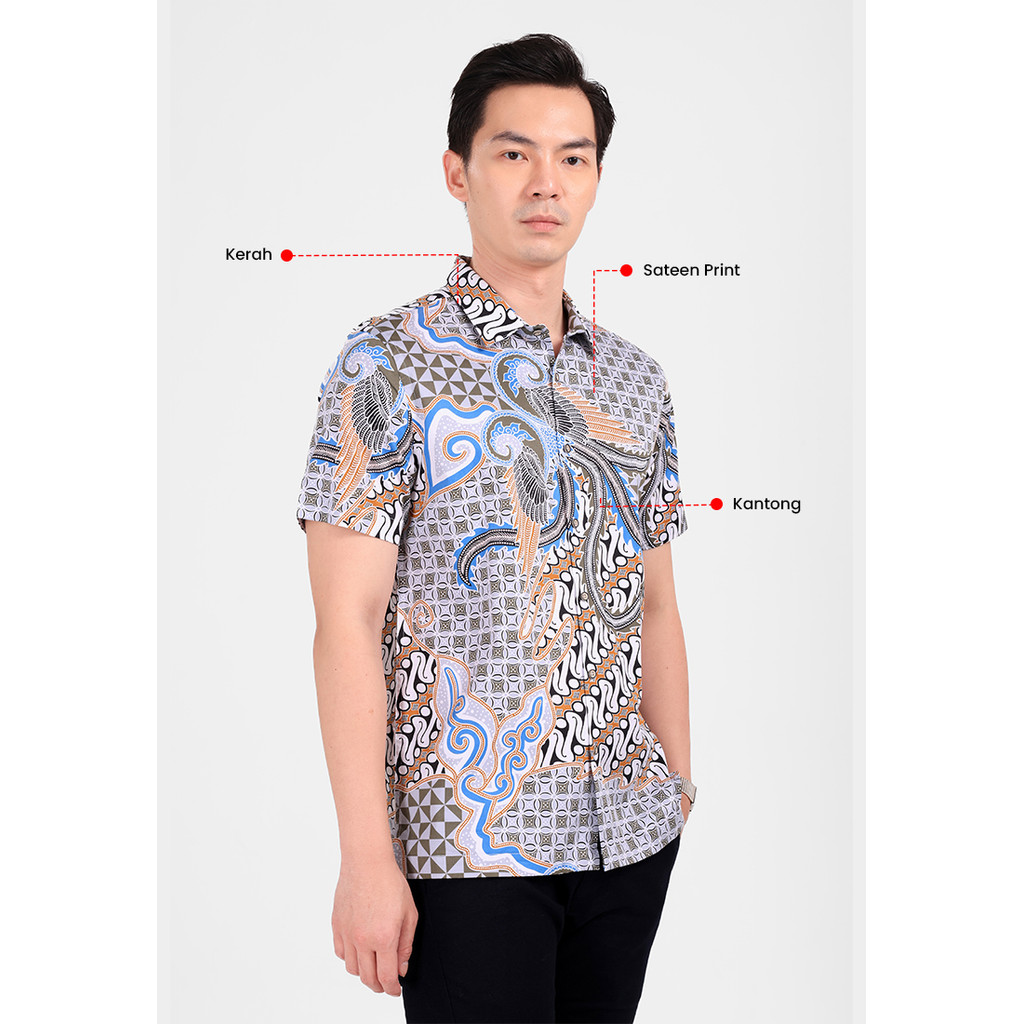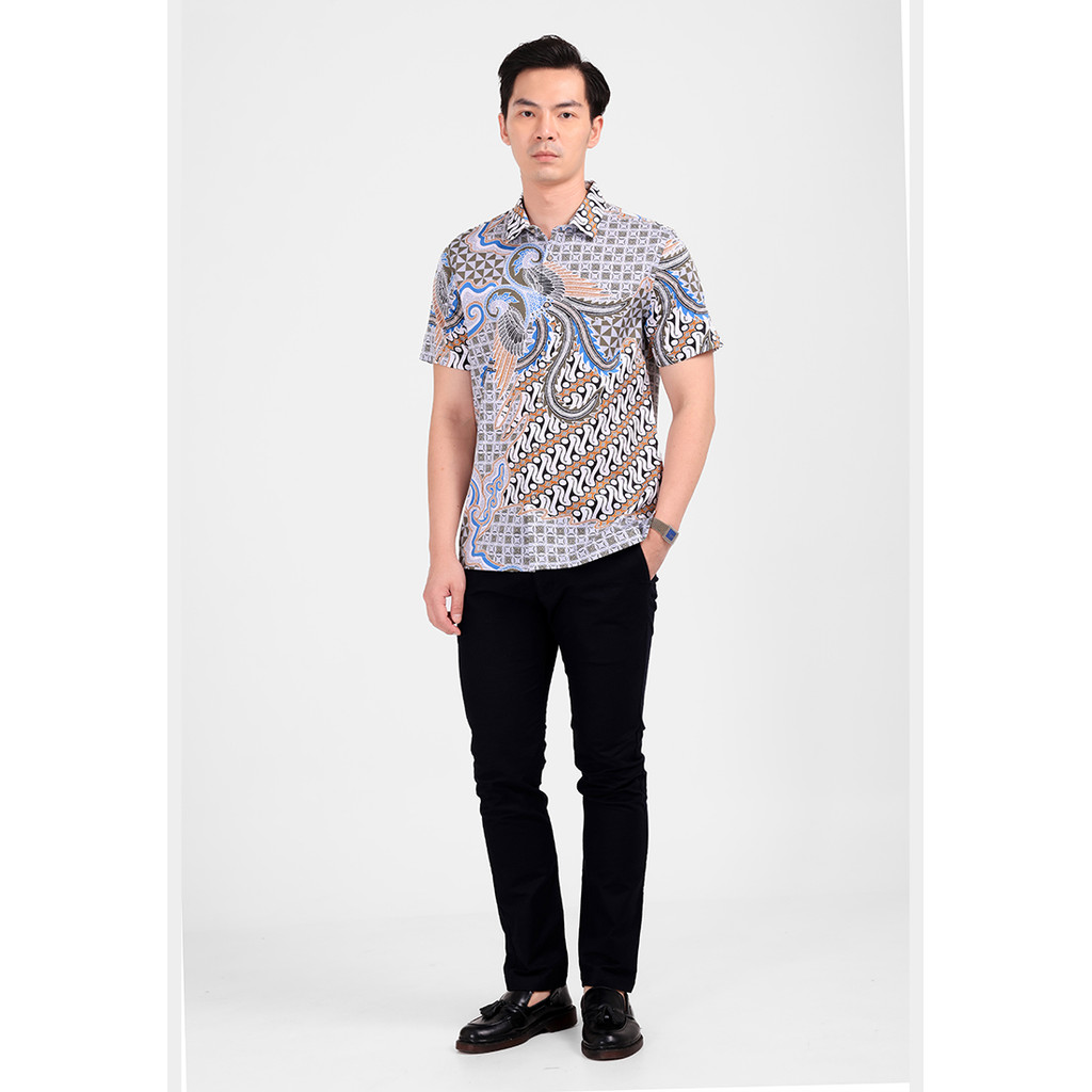 MANZONE - Kemeja Batik Lengan Pendek Pria Biantara Modern Fit - Khaky