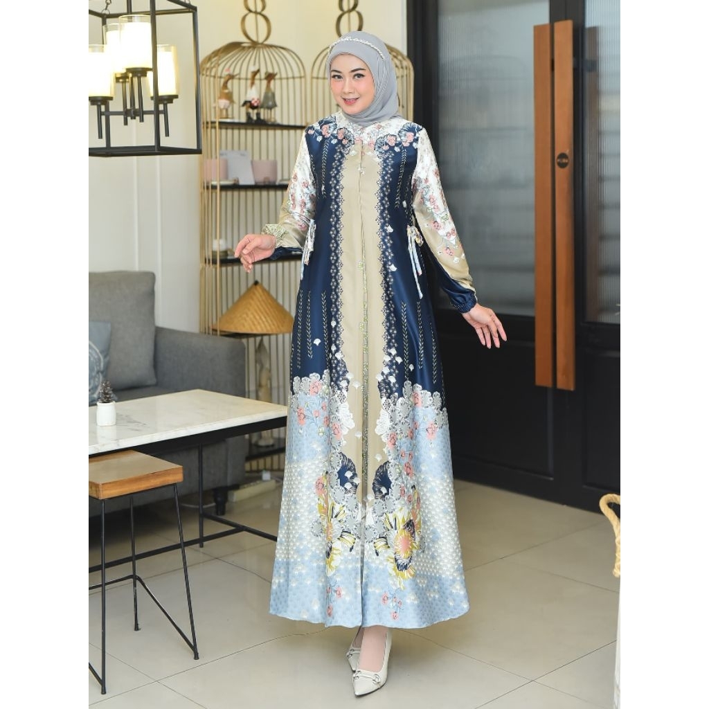 DREES Lily SILK PREMIUM TERBARU Gamis Motif Bunga Muslimah Terlaris/ DRESS WANITA Mewah Elegan/Gamis Chania Mode Terbaru