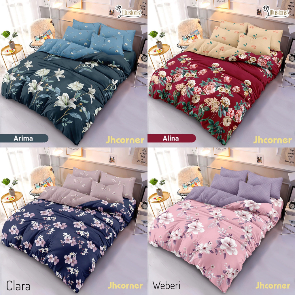 [Mall] SET BEDCOVER ILLUSIONS 180X200CM 6KAKI KING SIZE TERLARIS MURAH DAN CANTIK MOTIF BUNGA TERBARU