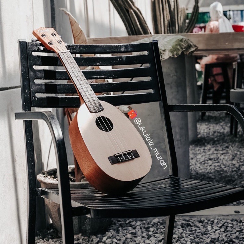 UKULELE HANDMADE PINEAPPLE NANAS BULAT NATURAL FREE TAS PICK SENAR CADANGAN