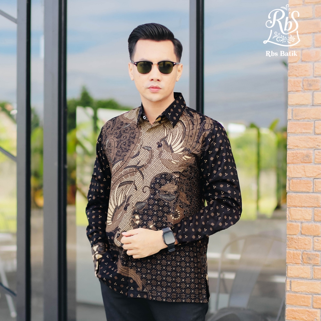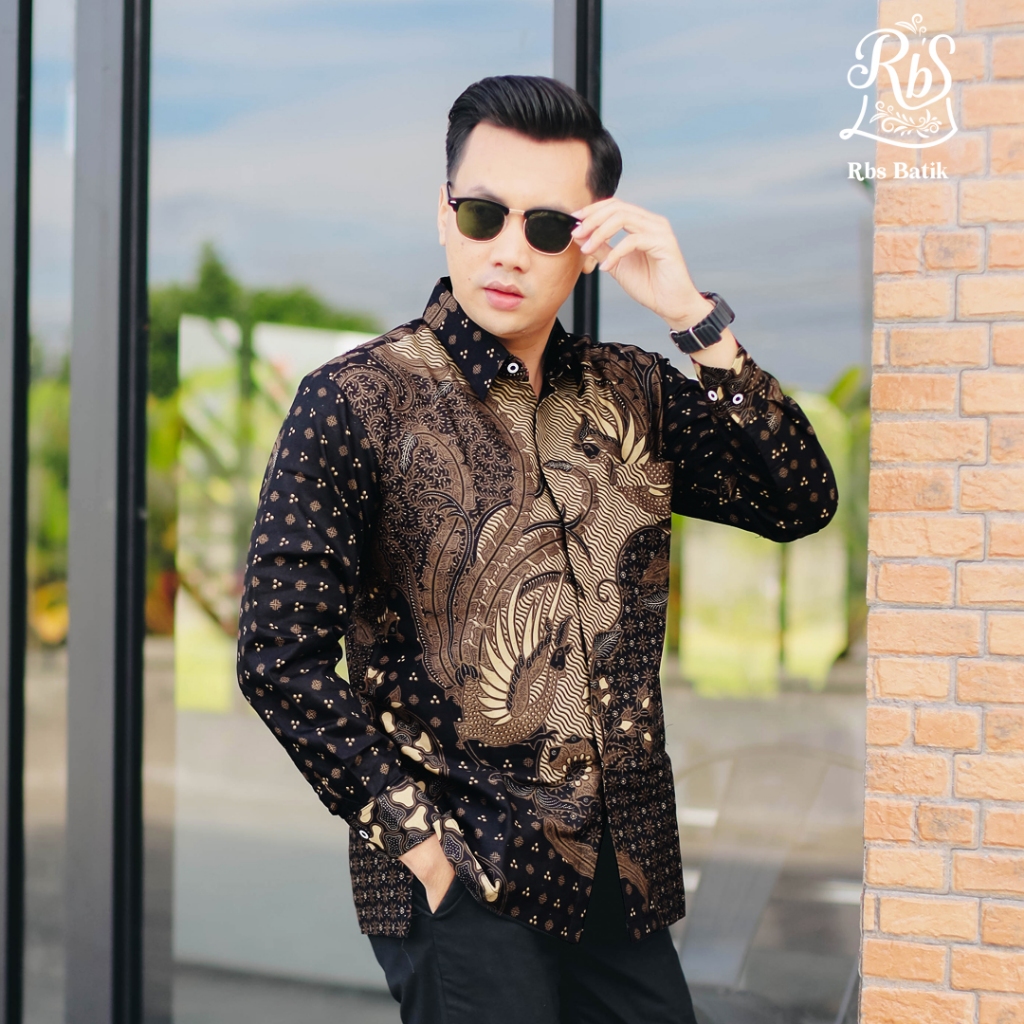 RBS Batik - Kemeja Batik Pria Hastina Slimfit Hitam Coklat Motif Cendrawasih Slimfit Lapis Furing