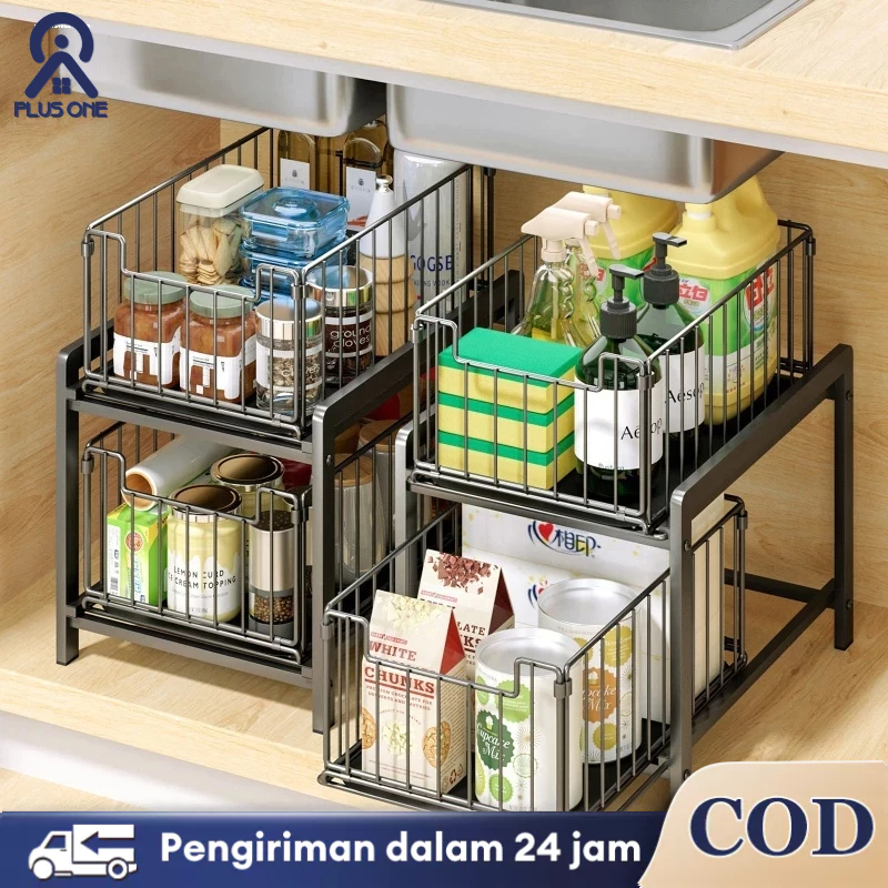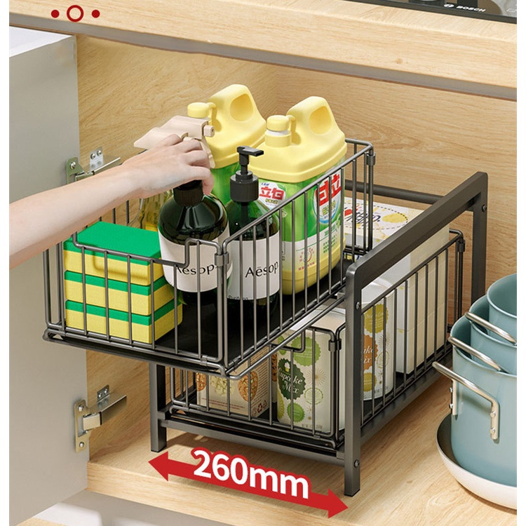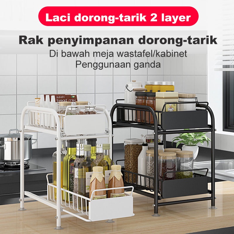 [Mall] Rak Dapur Bawah Wastafel Lemari Dapur Keranjang Geser Laci Rak Dapur Penyimpanan Serbaguna Rak Tarik